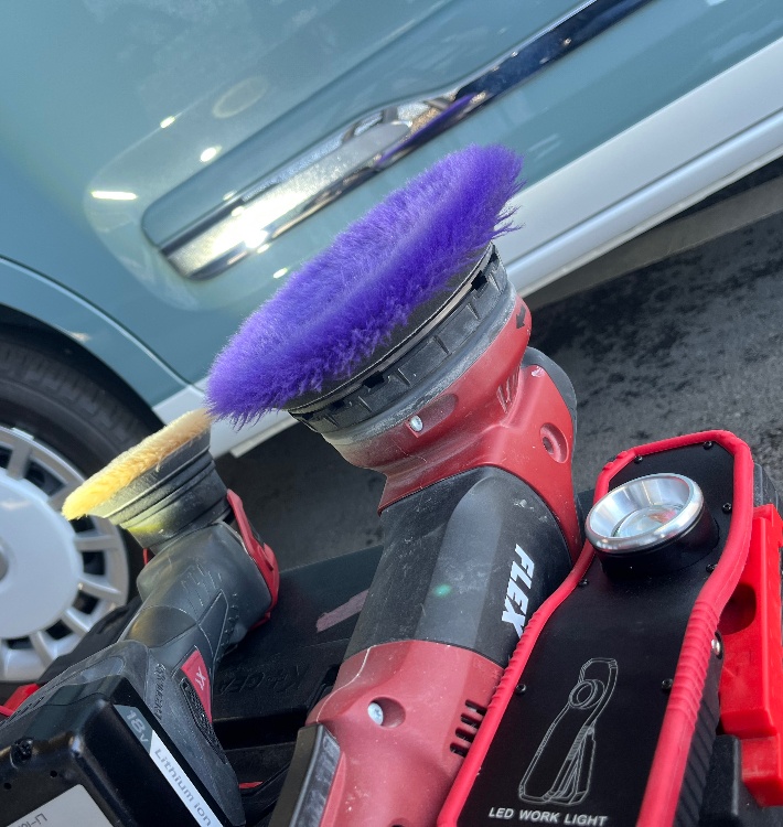 各種洗剤や道具、ホース、脚立、ブロワーなどいっぱい持って伺います。